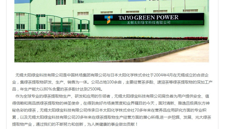 作為知名的茶多酚制造商,太陽綠寶在行業備受尊重,也是一家值得供應商敬仰的可靠伙伴。嘉源與太陽綠寶的合作最早可追溯到2006年,于2007年完成了第一批干燥設備的交鑰匙工程。并在隨后十余年里不斷攜手同行。